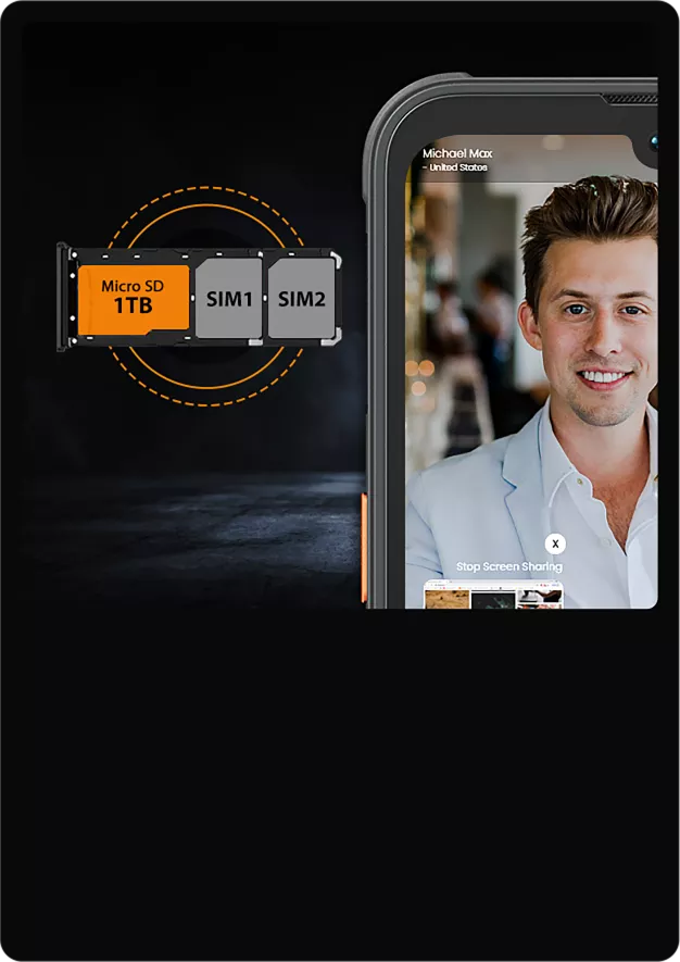 В Blackview BV5200 Pro используется гибридный слот, позволяющий одновременно использовать 2 СИМ или СИМ + карту памяти объёмом до 1Тб.